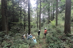 知足の森の基本的な植生について調査しました。間伐中の知足の森よりも間伐が終了している針葉樹が疎である周辺の調査地で出現種数が多かったです。出現した種には耐陰性種と日向を好む種の両方がみられ、林内の光環境が多様であったことが考えられました。また、両地点でシカの食害による影響が確認されました。 |